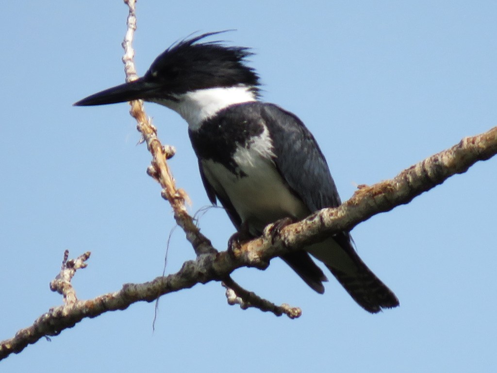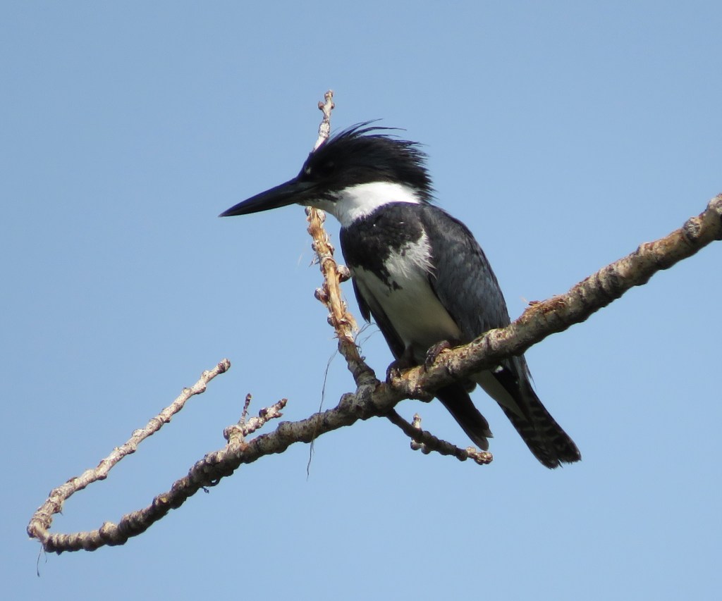 Kingfishers get their name because they are known as the kings of fishing and are fish eaters. There are many different varieties all over the place, wherever there is water. Here in Colorado, we have Belted Kingfishers. Sometimes, they even pay a visit to our lakes or ponds too.