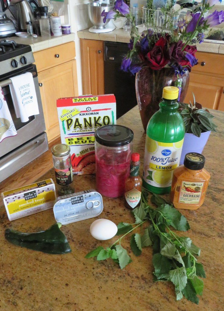 I am still creating recipes for my Cole’s Tinned Fish, Smoked Salmon Salad With Lemon Basil Vinaigrette, and I used the smoked trout this time. I created a recipe for trout cakes, very similar in style to my Maryland crab cakes. Chicken and Crab Cakes Of course I used different seasonings and bold flavors to really bring out and highlight the flavors of the smoked trout.
