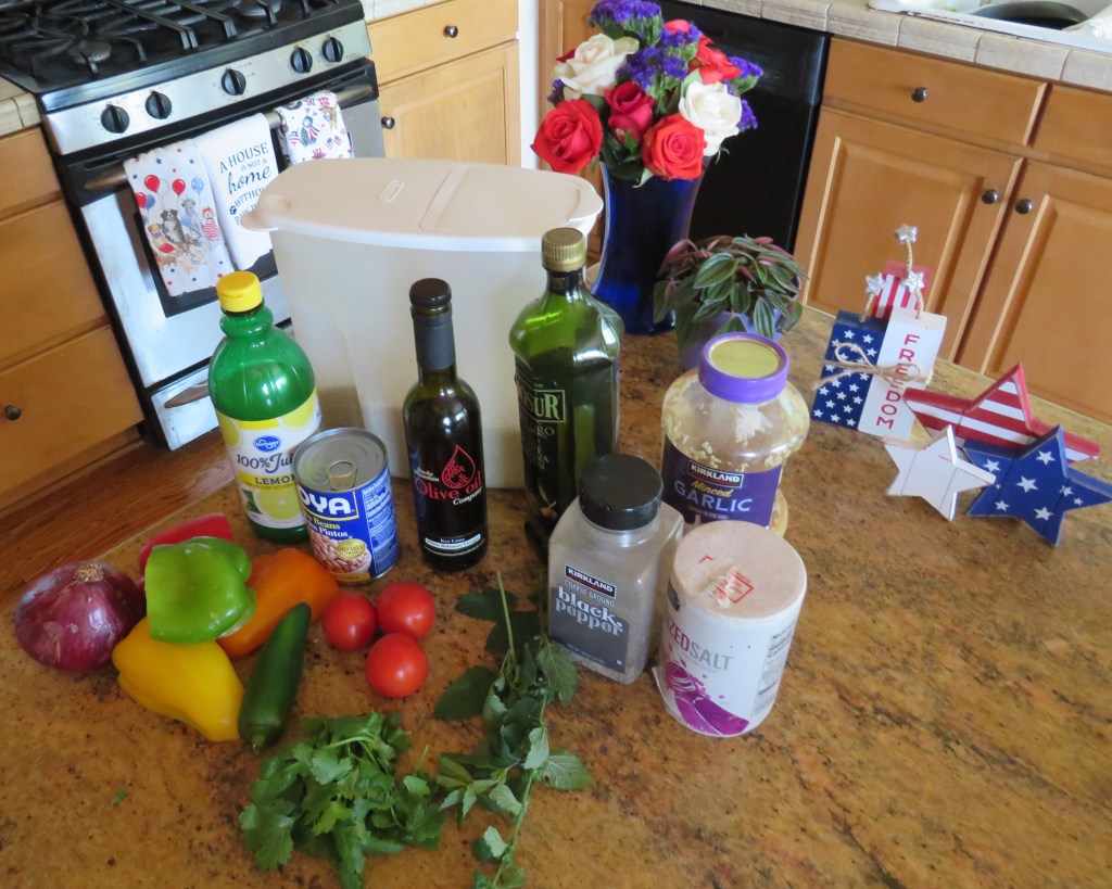 It’s been way too hot to cook, so I am trying to make as many cool things as I can to help beat the heat. We went to our friends Erik and Shannon’s house for dinner, and I brought a cool summer salad. It was a rice and bean salad, filled cool summer vegetables. It was a big hit and everyone enjoyed it, and it went very well with the steaks Erik grilled up too.