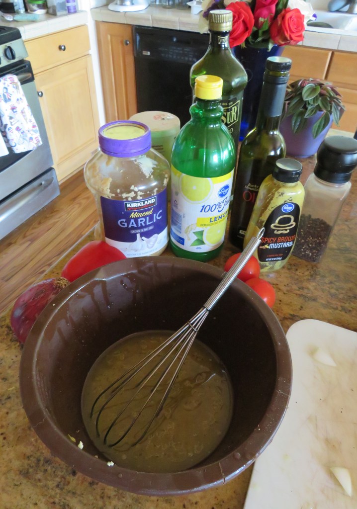This cool and refreshing salad is super easy -peasy to make and tastes great. Plus it won’t heat up the kitchen much either. You can just make it up and let everything marinate together while you are off doing your thing. It will be ready when you are.