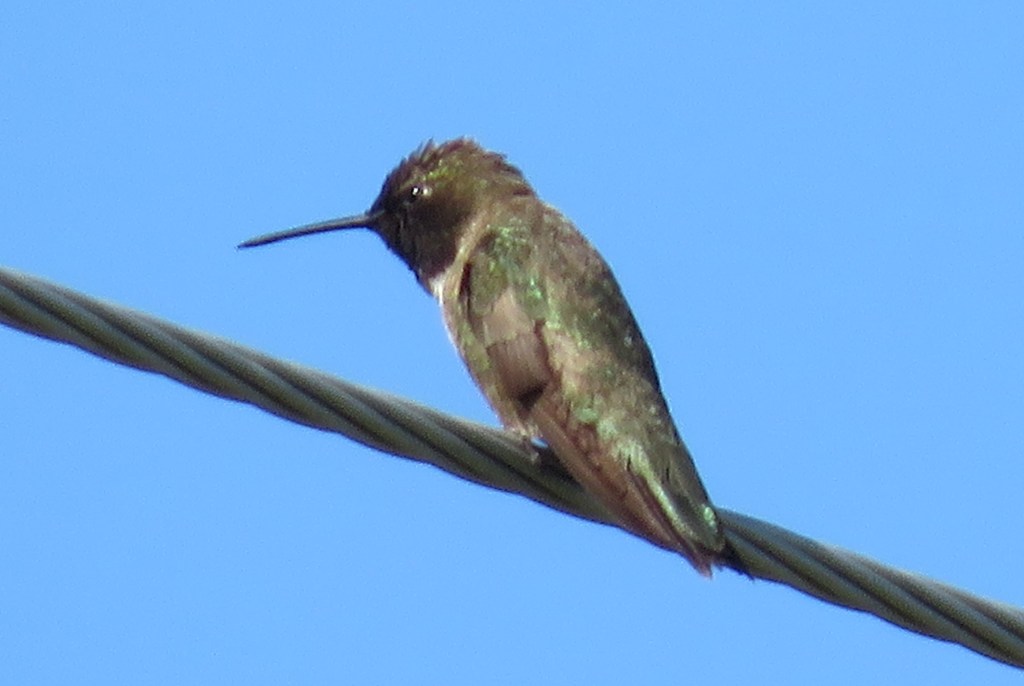 I ended my photo shoot with a couple of decent shots of a Black-Chinned Hummingbird, perched on a wire.