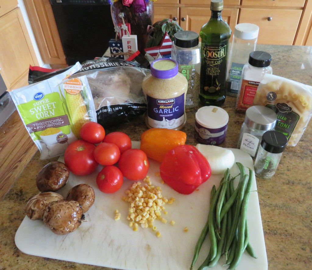 I had some leftover Costco chicken I wanted to use and I felt like pasta. I always love throwing in as many vegetables into a dish as I can too. So I just tossed everything in and this is what I came up with. 🙂