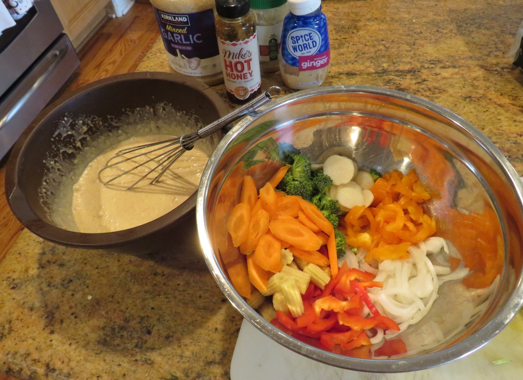 As usual, I added a lot of vegetables to my dish. I had broccoli, carrots, onions, red and orange bell peppers, baby corn and water chestnuts. YUMMY! I also made it with cashew butter instead of peanut butter too. I like it with the cashew butter. I like it with peanut butter too, but the cashew butter seems to be a little “smoother” and creamier in taste.