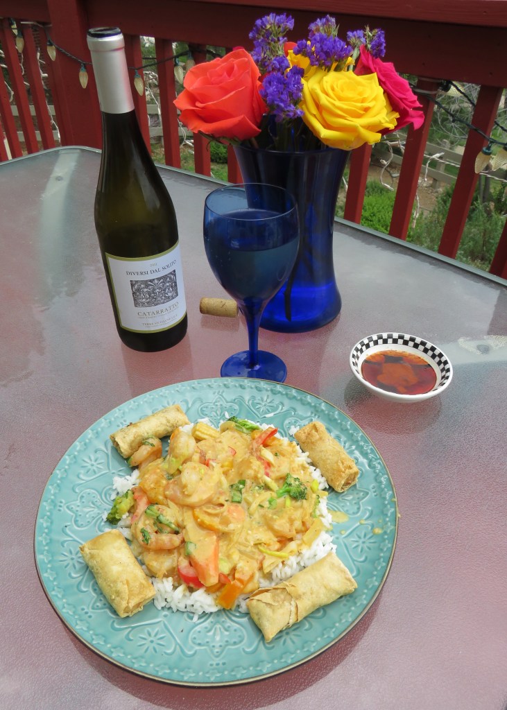 I added fried egg rolls on the side and served it with a cool, crisp Chardonnay to complete the meal. Delicious!