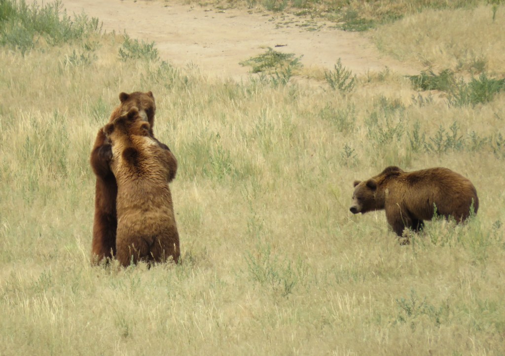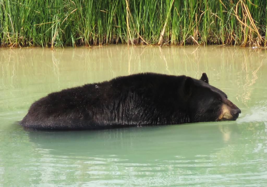 The bears, both the grizzly and the black bears, were very active. Mostly they were trying to keep cool by dipping themselves in the water and going for a swim.