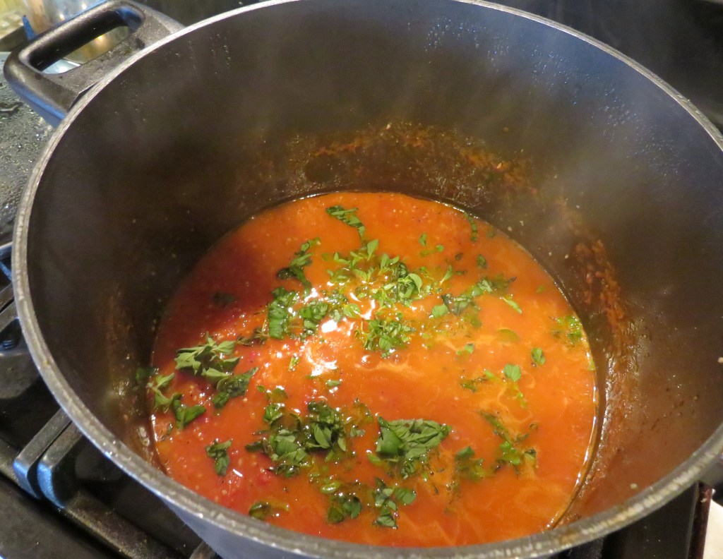 I made not one sauce, but two. I made another big batch of regular marinara sauce. Making Marinara