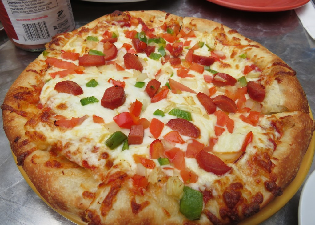 I had a pizza, with smoked sausage.