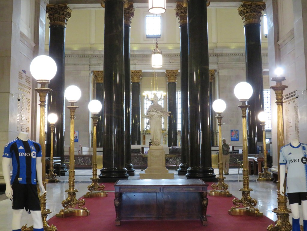 There has always been a sort of rivalry between the English and the French in Montreal, and has even been depicted in their art and structures. This is the old bank, established by the English.