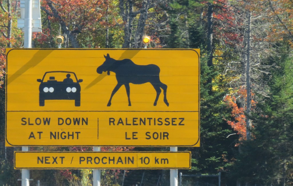We kept seeing moose signs, and when we stopped there were two hunters who said they had seen a few moose earlier that morning. We were looking for them, but the only moose we saw were the man made ones. 😦 Ironically, as Larry and I were watching the news this morning, there was a baby moose trapped in a ditch here in Colorado, and it was rescued and returned to its momma. So We can see the moose here at home, but not in Canada. HMMMMM!