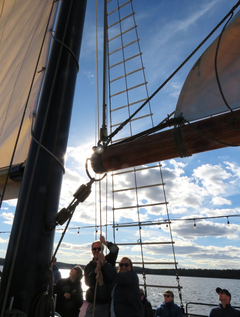 When it was time to hoist the sails, Larry and I jumped right up to volunteer.
