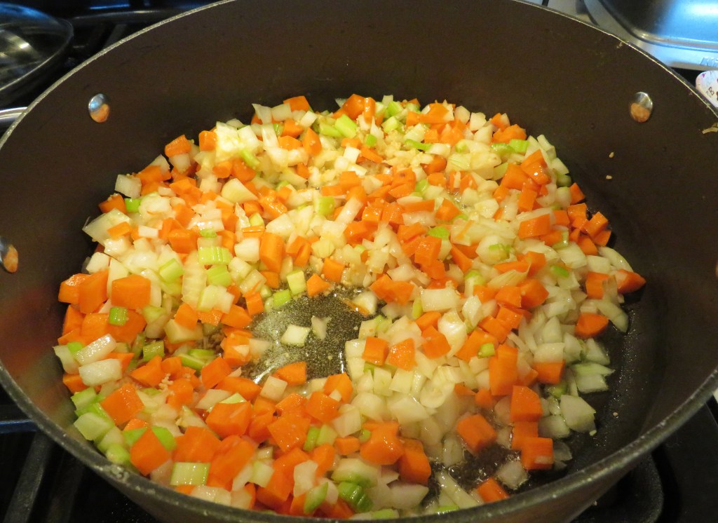 I cooked my carrots, celery and onions for about 5 minutes in hot oil and butter.