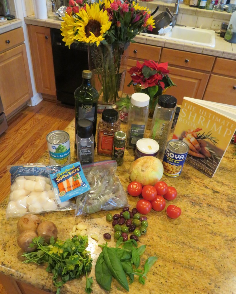 The recipe that inspired me made no mention at all of using either vodka or Ouzo. So I will have to make it again, using one of those as the cooking sauce. Oh darn! I have to make it again. 🙂 🙂 🙂 I also added more seafood, so it wasn’t just shrimp, and I added vegetables as well.