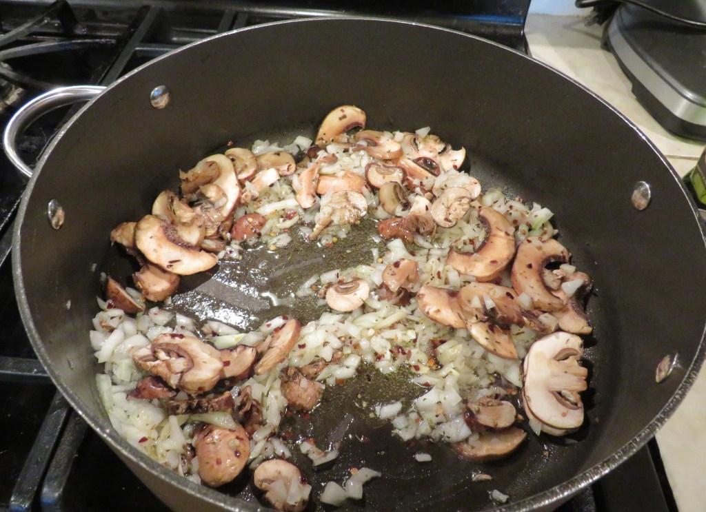 Add the onions, mushrooms, garlic and spices and cook for about 5-7 minutes, or until the onions are softened and translucent.