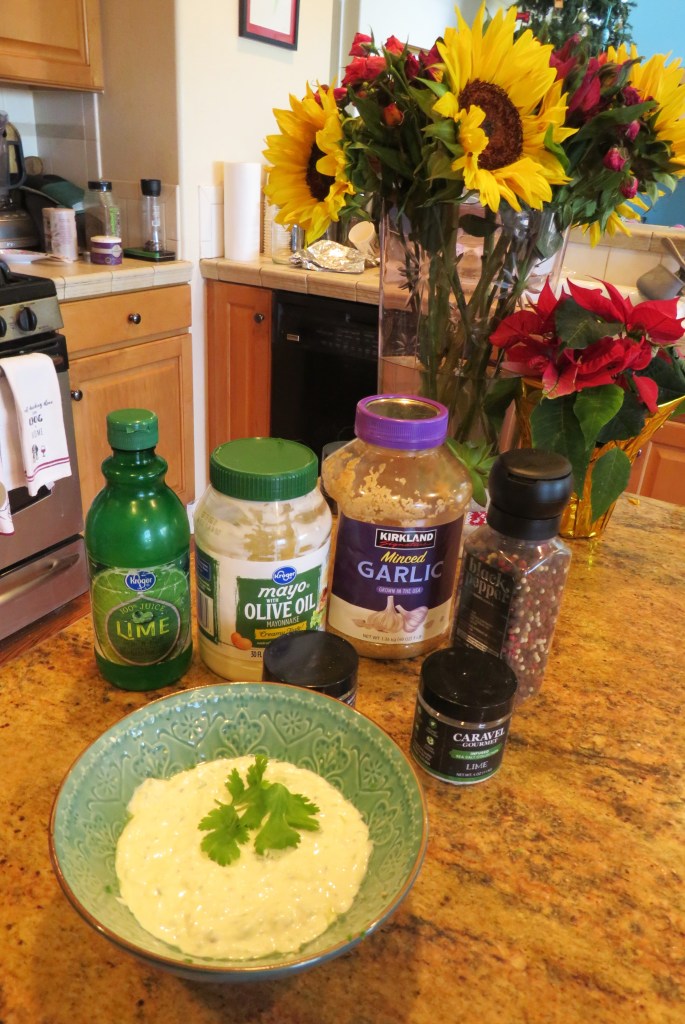 Mix the garlic, jalapeno and lime juice together first, then add it to the mayonnaise and salt & pepper mixture and mix together well.