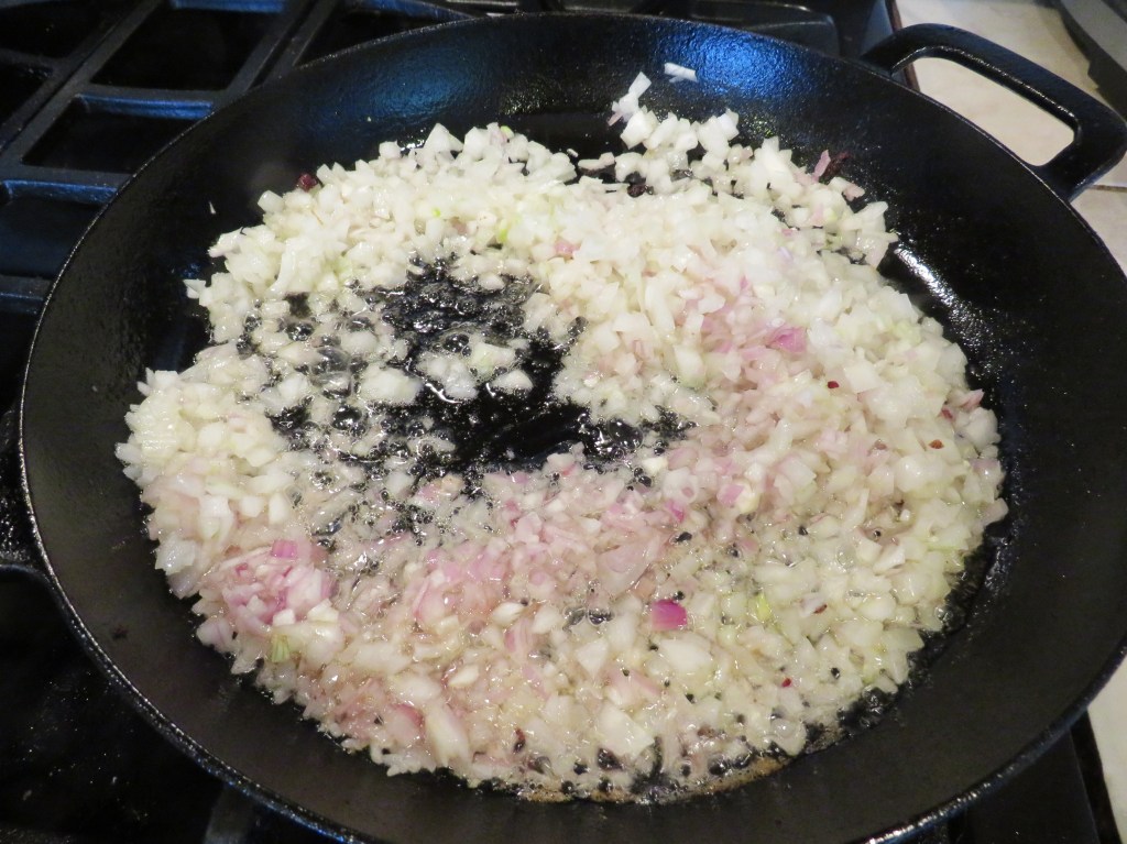 1 1/2 onions, diced fine – 1 onion and a shallot or two works just fine too