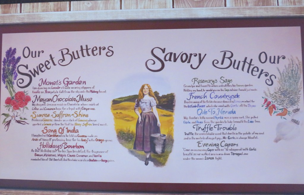 We took three of the fabulous Bella La Crema butters home with us, but I already plan on going back because we missed one that we really liked a lot – the Morello Rum Melody prepared with cherry, nutmeg, lemon, sugar, molasses, and rum. Larry and I bought the Wildflower Butter, Monet’s Garden and the French Country Style Butter. Janet and Bob came home with a couple of new butters as well.