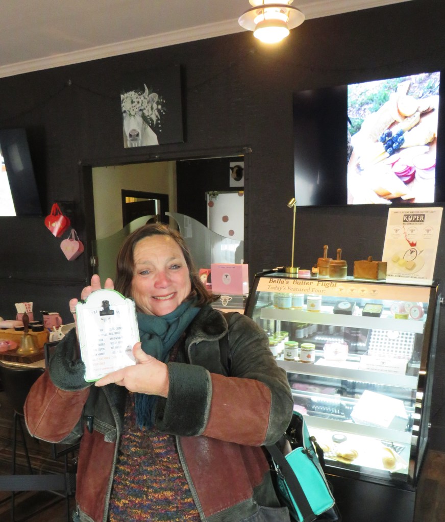 We tried six different butters, all of which were delectably delicious and very unique. There are little printed menus that you make your selections on and Shauna lovingly serves them on a hard plastic straw for you to taste her beautiful creations. Instead of a wine flight, you are embarking on a butter flight.
