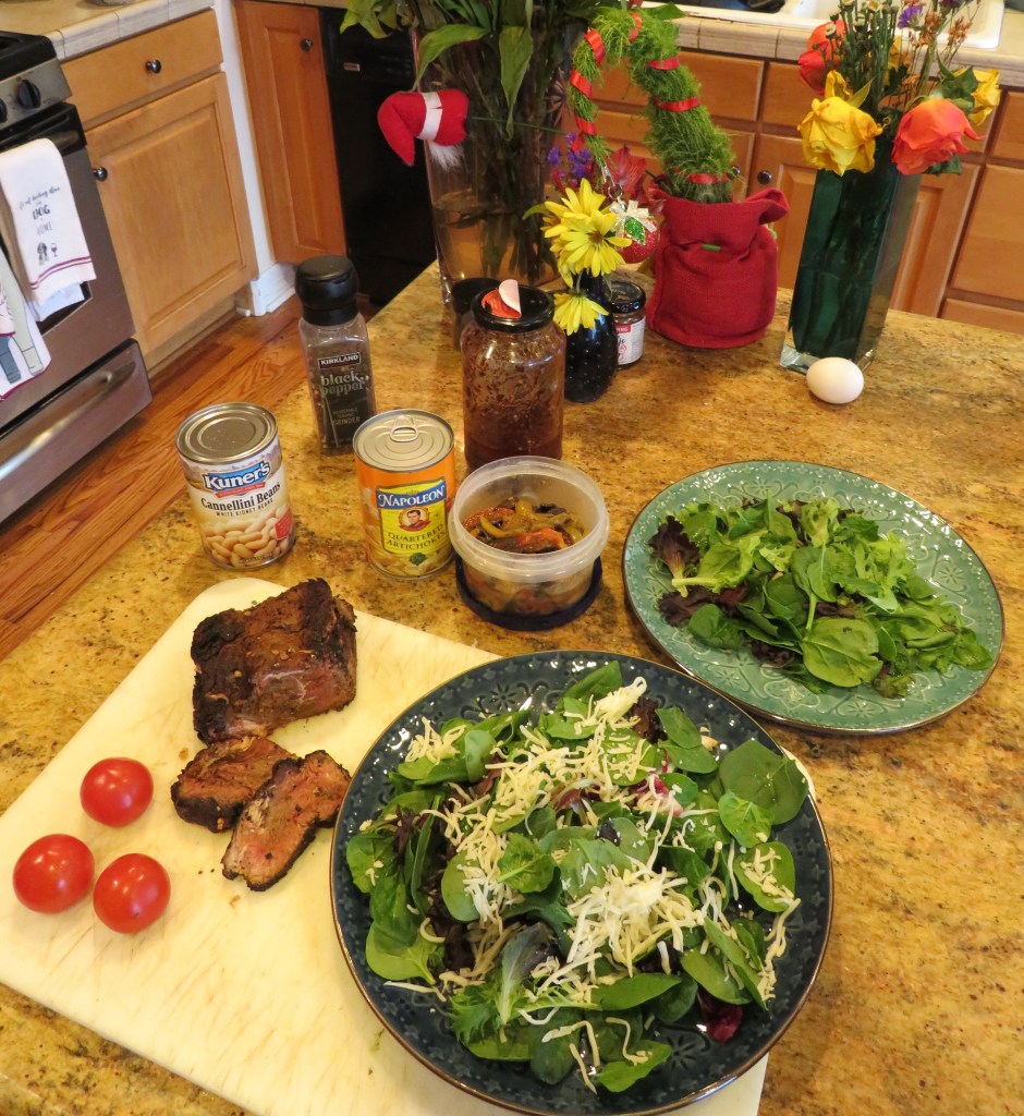 When I made my gypsy steak Gypsy Steak we had enough leftovers to make another meal. You all know how I love to play with my leftovers. This time the Queen came dressed as a gypsy. It was a warm day, so I turned my steak leftovers into a delicious gypsy style salad.