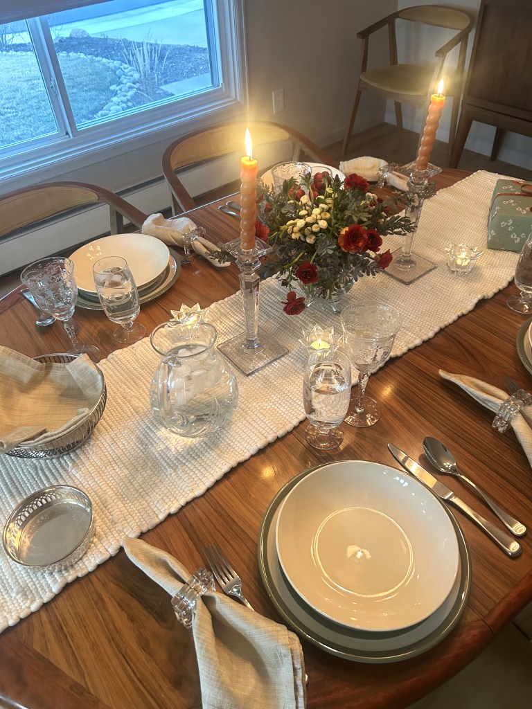 Priscilla and Jonathan had us over for a belated birthday celebration, and as always, Priscilla made it such a beautiful, elegant affair. She has a real flair for turning simple events into very classy and elegant events. She sets the table with fine china and tableware. There are always simple, elegant floral displays, and the food, well that just goes without saying. Priscilla is a fabulous cook, and everything always tastes spectacular.
