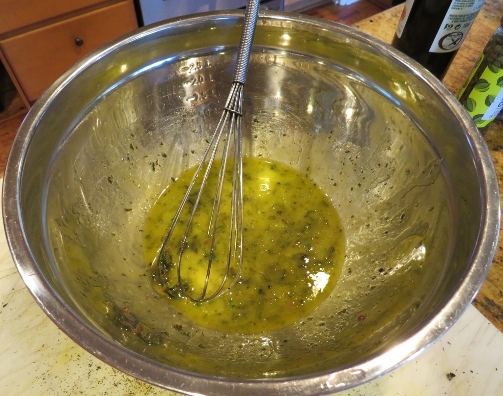This is a simple, easy-peasy vinaigrette that went very well with this light salad. It is very Mediterranean. A lot of the Mediterranean dressings are very simple like this. They are very light and refreshing, especially when the weather gets warm.
