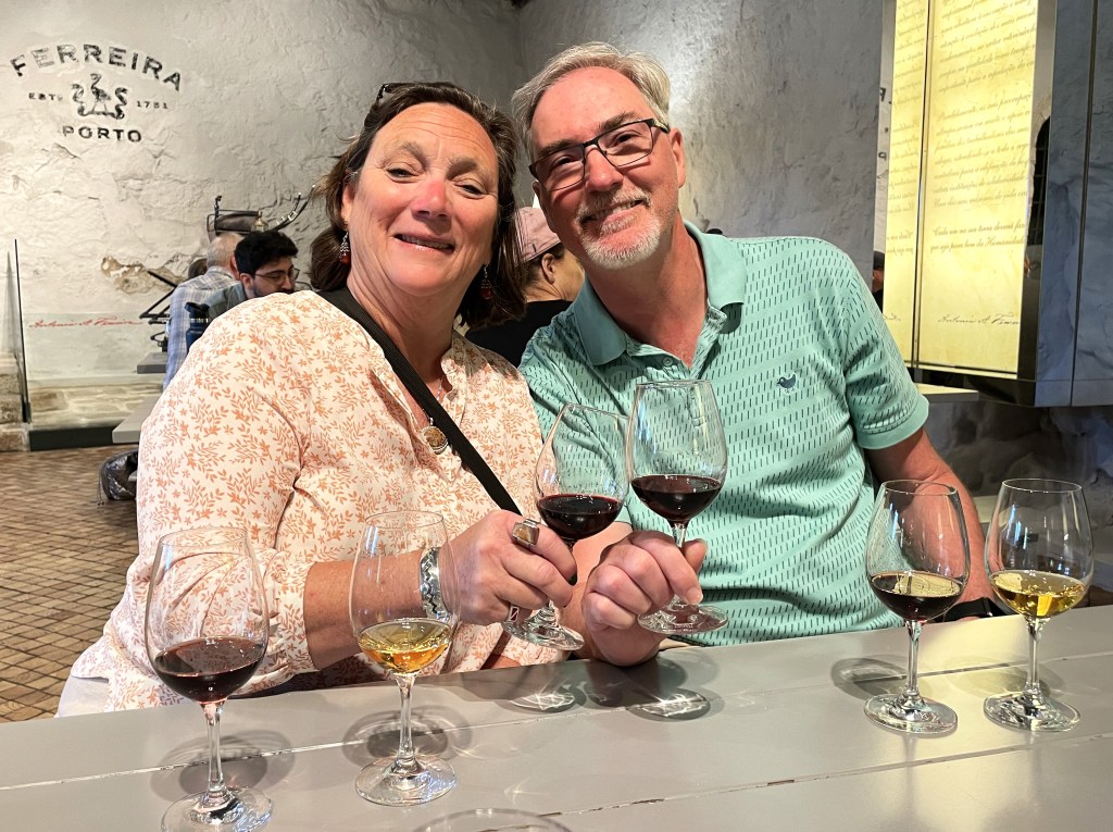 We did not purchase any of the ports at the times of our tastings, which is a shame, because while we were looking for our favorites later, we couldn’t find them. But we did come home with 2 bottles of port. We did get a white port, though not Sandman’s, because we couldn’t find it anywhere, and a bottle of Ferreira tawny port.