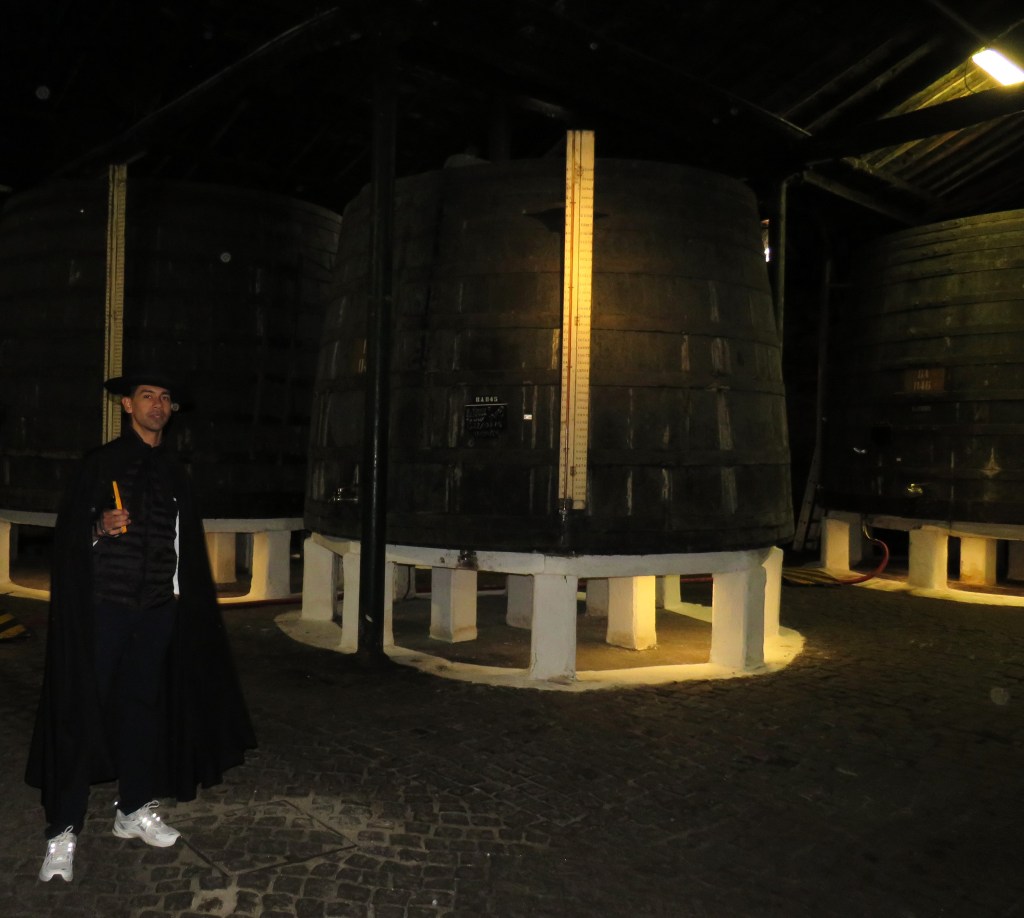 We took a tour of the cellars, and our guide was dressed as the traditional “Don”. He gave us the history of the ports in general, as well as the Sandeman history, as he guided us through the port making process.