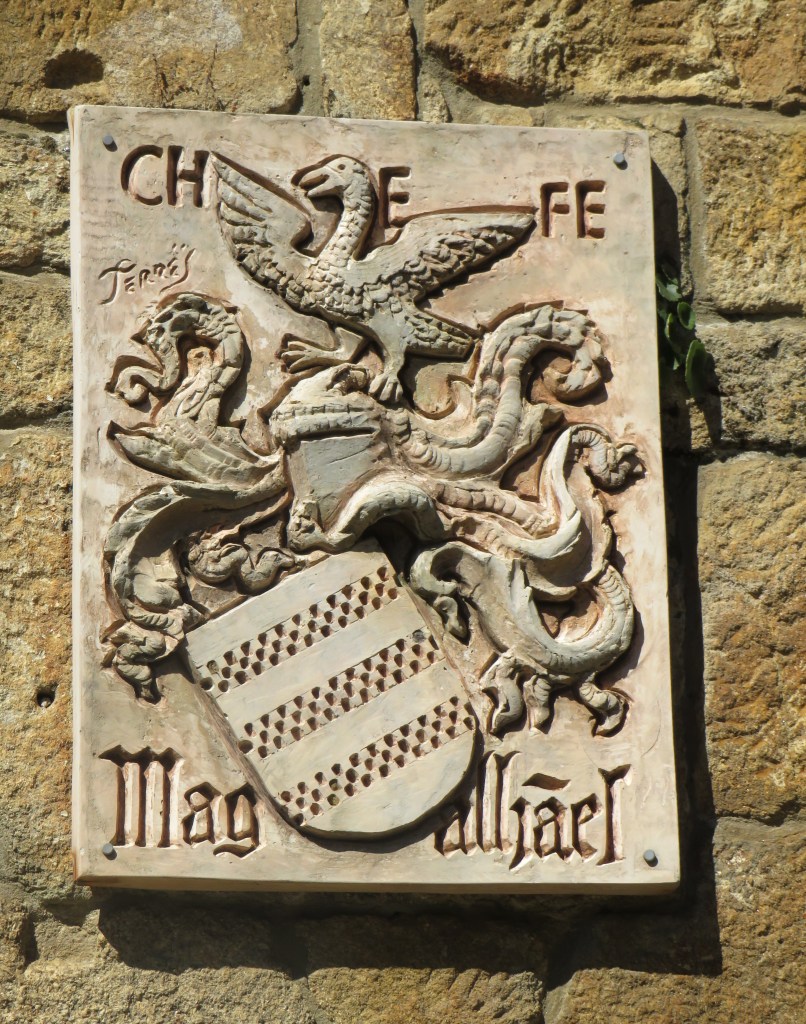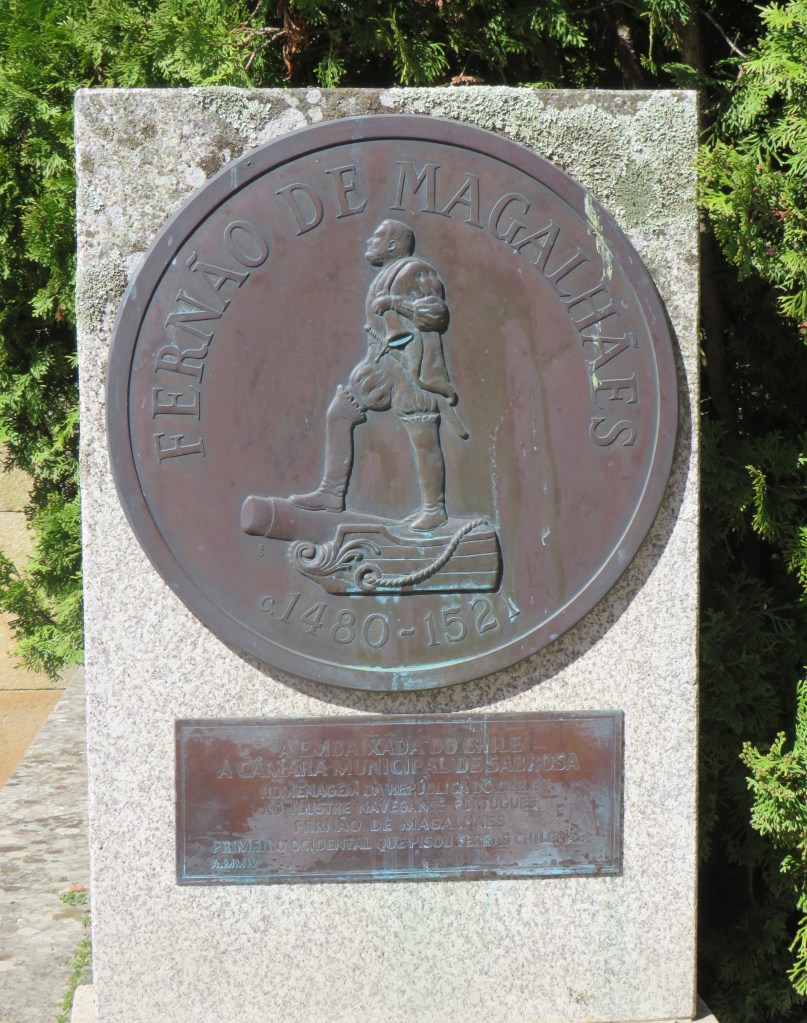 Before lunch was ready though, we made a little detour, just off the property a bit, and visited the house where the famous mariner and discoverer Ferdinand Magellan was born. Ferdinand Magellan is famous for organizing and leading the Spanish expedition (1519–1522) that achieved the first known circumnavigation of the globe. His original goal was not to go around the world, but to find a westward route to the Spice Islands (Indonesia) to open a new trade route for Spain.  Because he turned to Spain, Portugal viewed him as a traitor and even tried to stop his expedition, going so far as to send ships to destroy his fleet. After navigating the dangerous strait (now named after him) at the tip of South America, the ocean they entered appeared calm compared to the turbulent Atlantic, leading him to name it Mare Pacificum (Pacific Ocean). He found the treacherous, winding passage connecting the Atlantic Ocean to the Pacific Ocean in 1520.