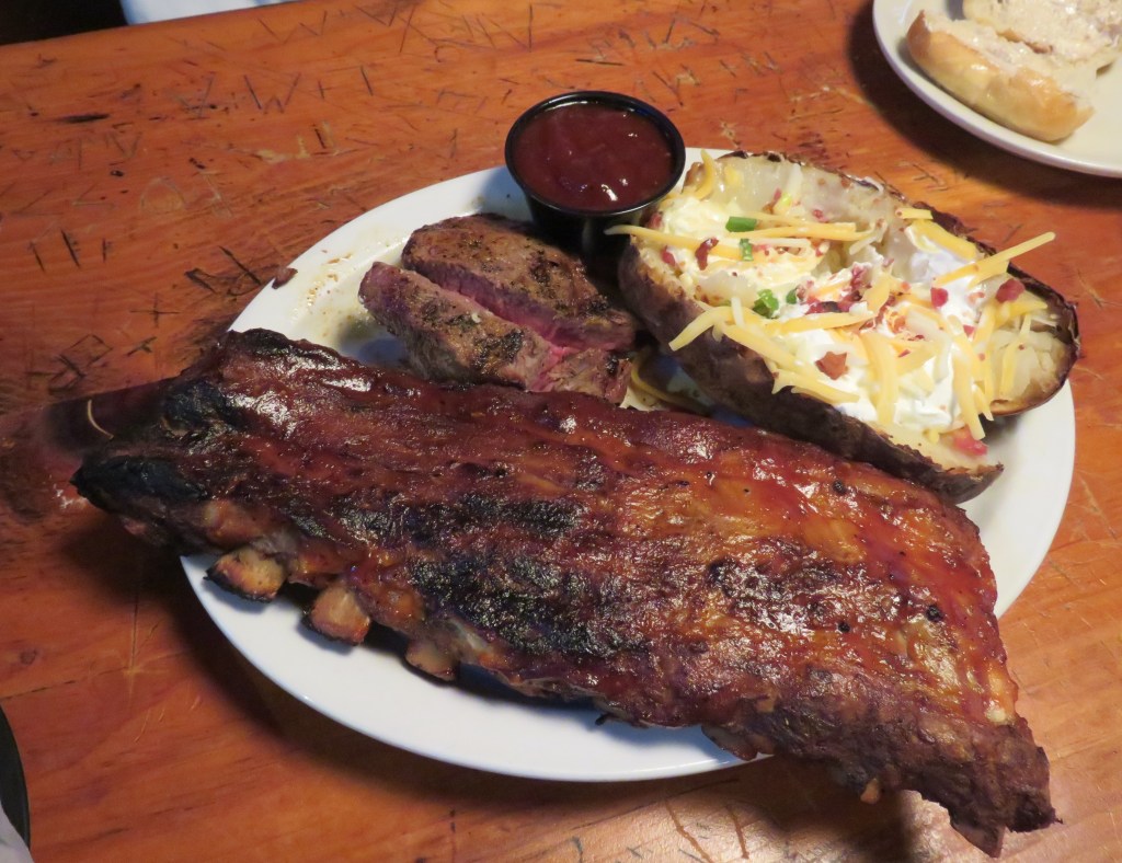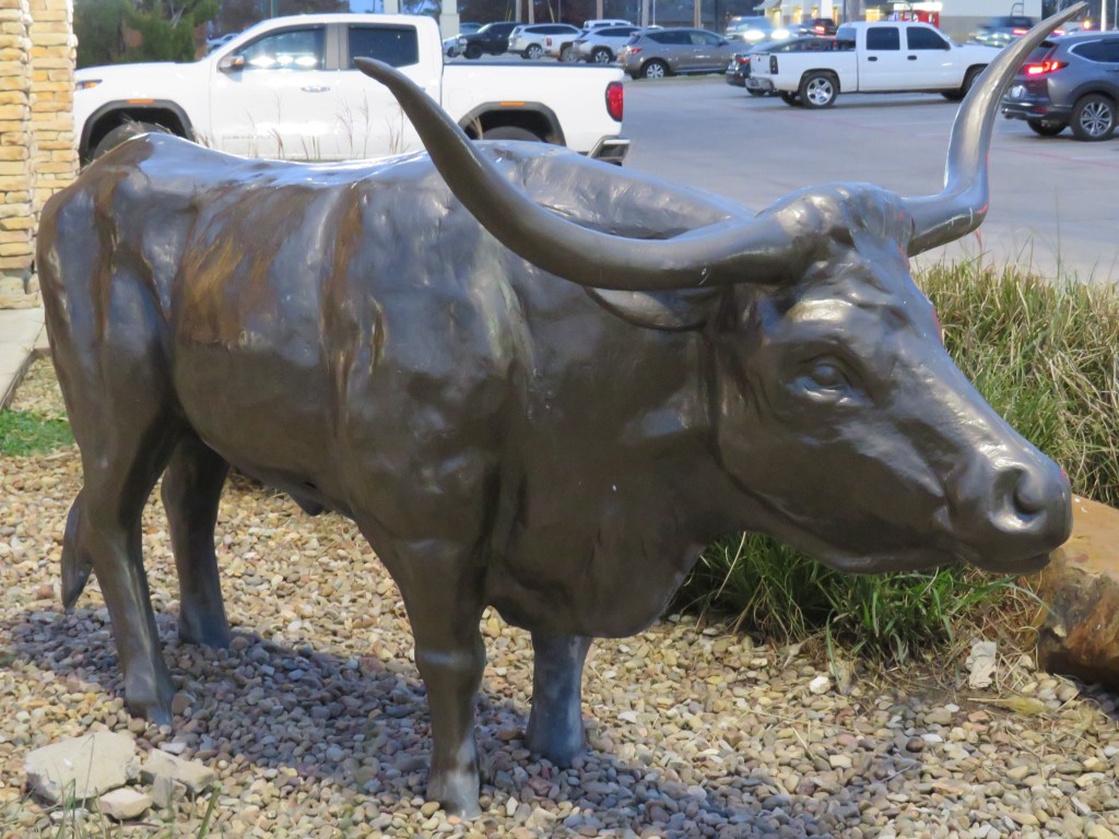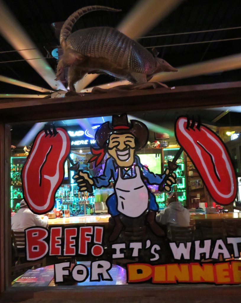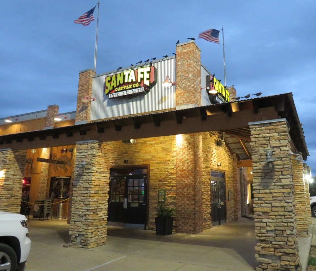 We made it to OK for dinner. After a long day of driving, with another long day of driving ahead of us, dinner was about all we had left in us. We had to stop for the night (a play on words from the Eagles’ song Hotel California). We both wanted steak, since after all, the whole trip through KS, OK, TX, was through cattle and beef country. So we stopped in a place called Santa Fe in Ardmore, OK and enjoyed a delicious steak dinner, Oklahoma style.