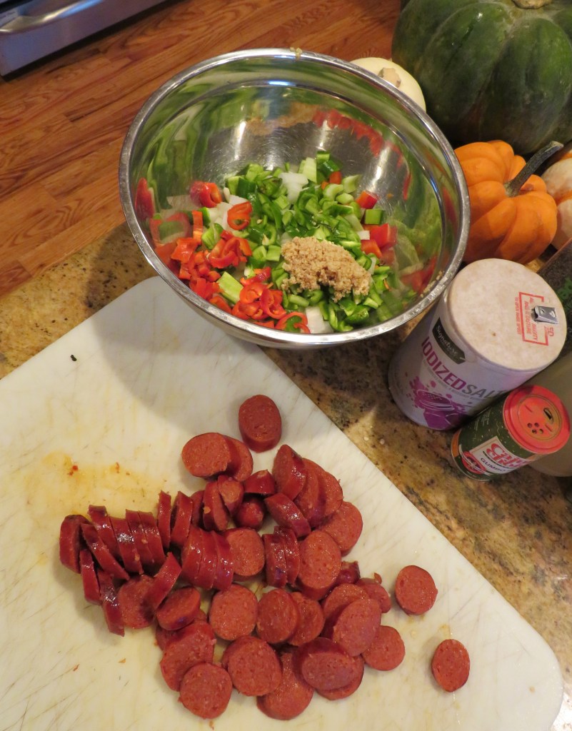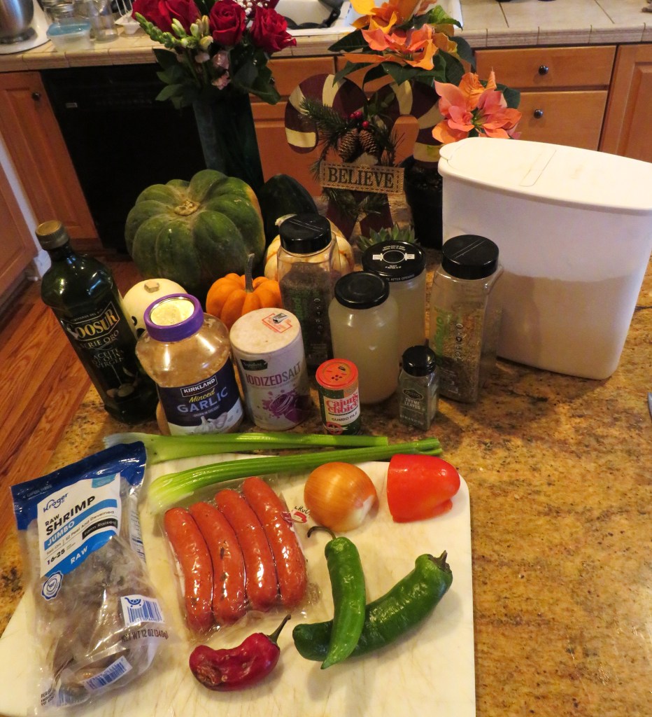 I made this particular gumbo with both shrimp and Andouille sausage, and of course the “Holy Trinity” of Cajun/Creole food, celery, peppers, and onions, plus garlic and various Cajun/Creole spices.