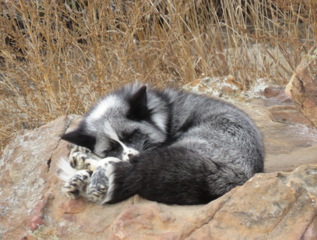 On our last visit to the Wild Animal Sanctuary, we had to cut it short due to inclement weather. We did get to see a few animals before leaving though. We saw a lot of the foxes, who were just sleeping all around, trying to keep warm.