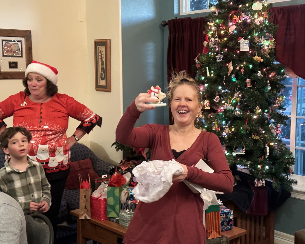 WOW!!!! What a busy weekend of fun holiday celebrations. On Friday, my friend Karen flew in from California for our annual ornament exchange party. This was her first experience with our ornament exchange parties. I thought it would be fun to have an early Christmas dinner in her honor. We had a small Christmas dinner celebration with Karen, Mike, Lauren and Larry and I. I cooked a traditional Christmas dinner that included smoked turkey and smoked prime rib with homemade horseradish sauce Merry Christmas βΒ 2022, courtesy of Larry and his smoker; scalloped potatoes; roasted vegetables; Yorkshire pudding and a chocolate mint cake for dessert.