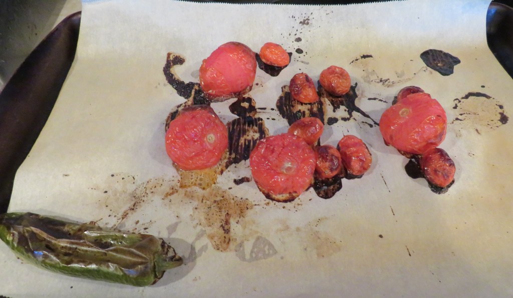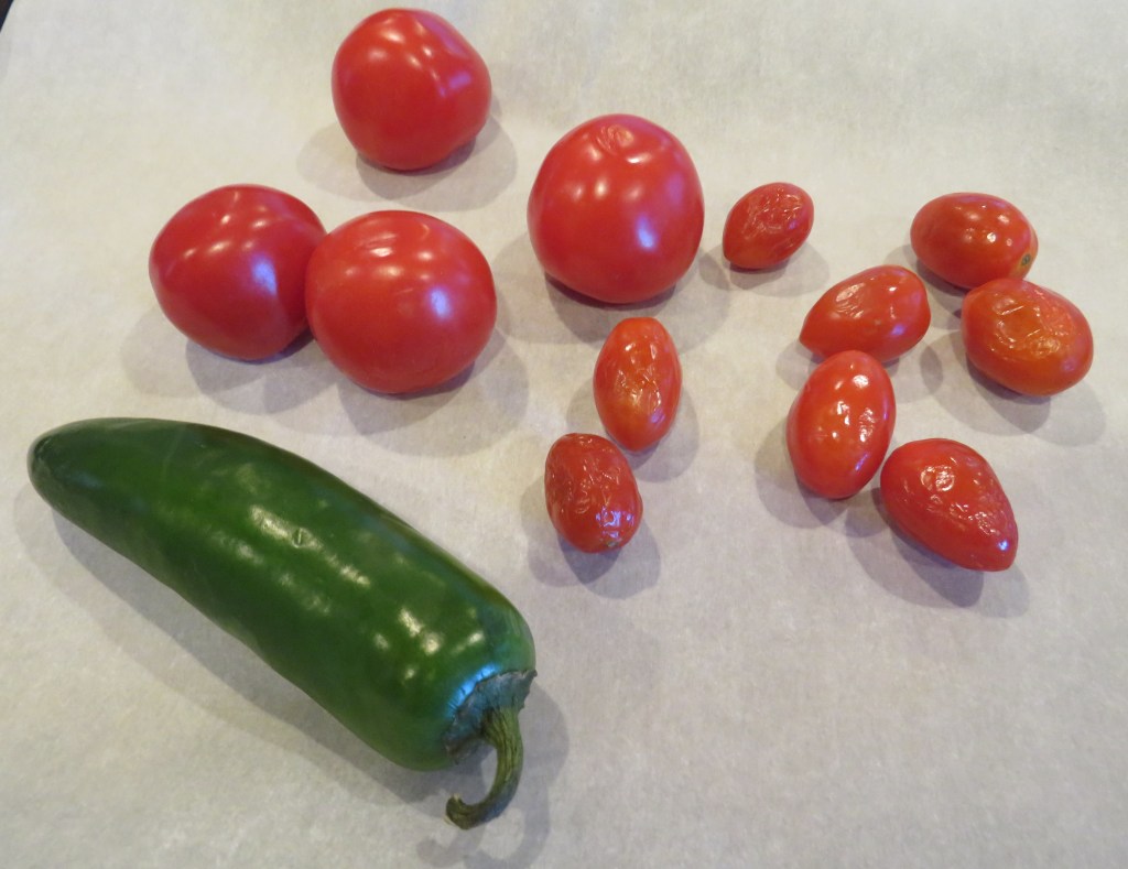 Roast the tomatoes and pepper for about 30-40 minutes or until soft and roasted. I like to mix and match my tomatoes, and I often use a couple of different varieties.