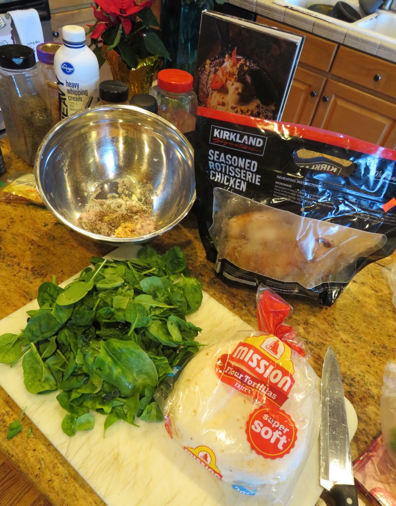 I made some chicken and spinach enchiladas and topped them with the chipotle cream sauce, the same sauce I used for my hongos en chipotle. Hongos en Chipotle I was looking for a new sauce to make and ended up making the hongos as well. Many people, and restaurants for that matter, make enchiladas with just one thing inside, but I like stuff in my stuff, so I made my filling with chicken, spinach, garlic and shallots. Larry and I also prefer flour tortillas to corn tortillas, though we eat both.