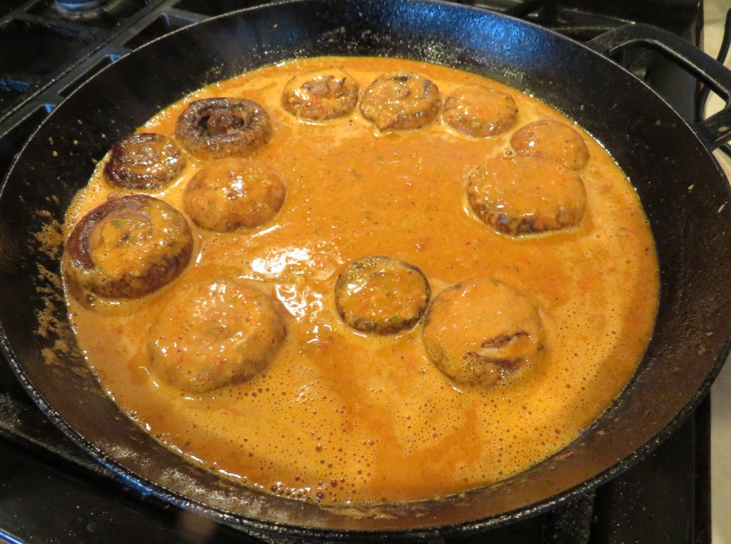 I was making chicken enchiladas, and I was originally looking for a different kind of sauce to make when I stumbled across the recipe for Hongos en chipotle. I used the same sauce for both my hongos and my enchiladas. The original recipe was very simple, with only a few ingredients. Of course I embellished upon it and made it my own. That’s just what I do. π