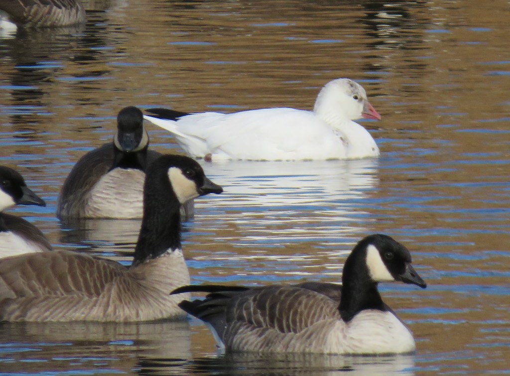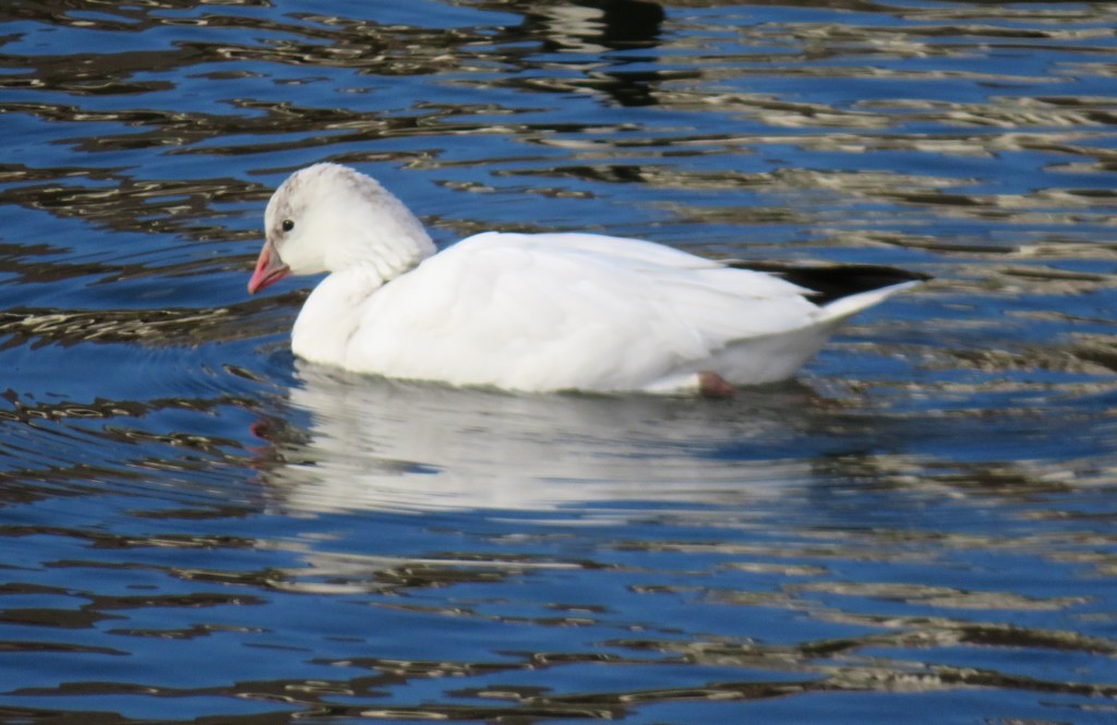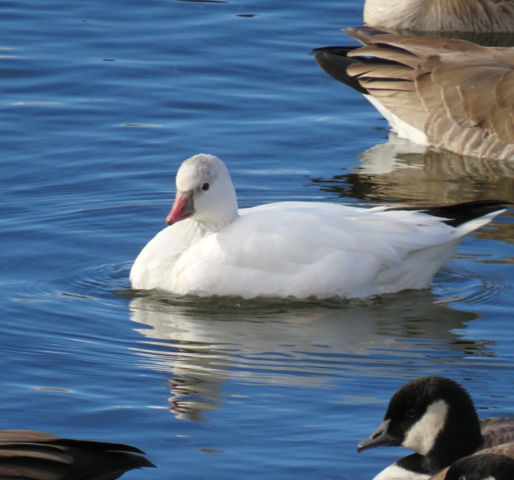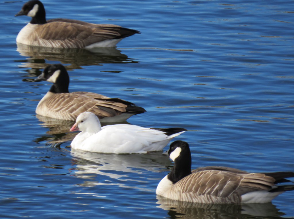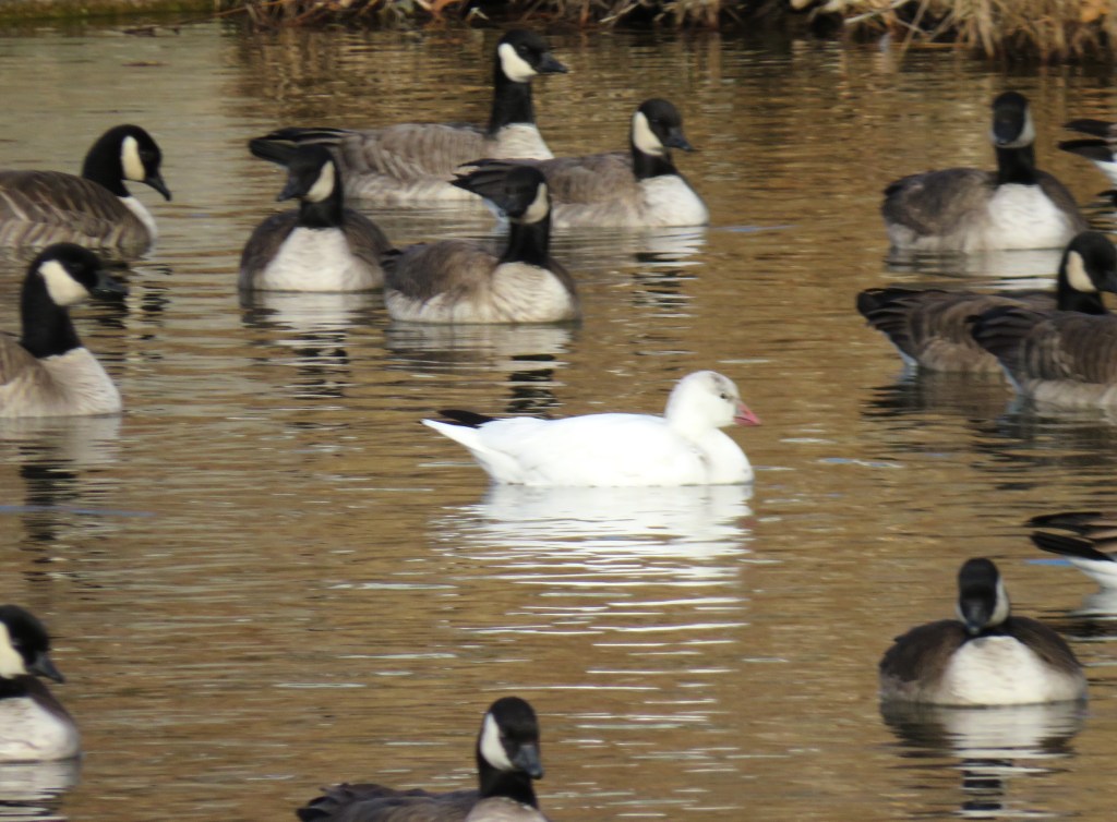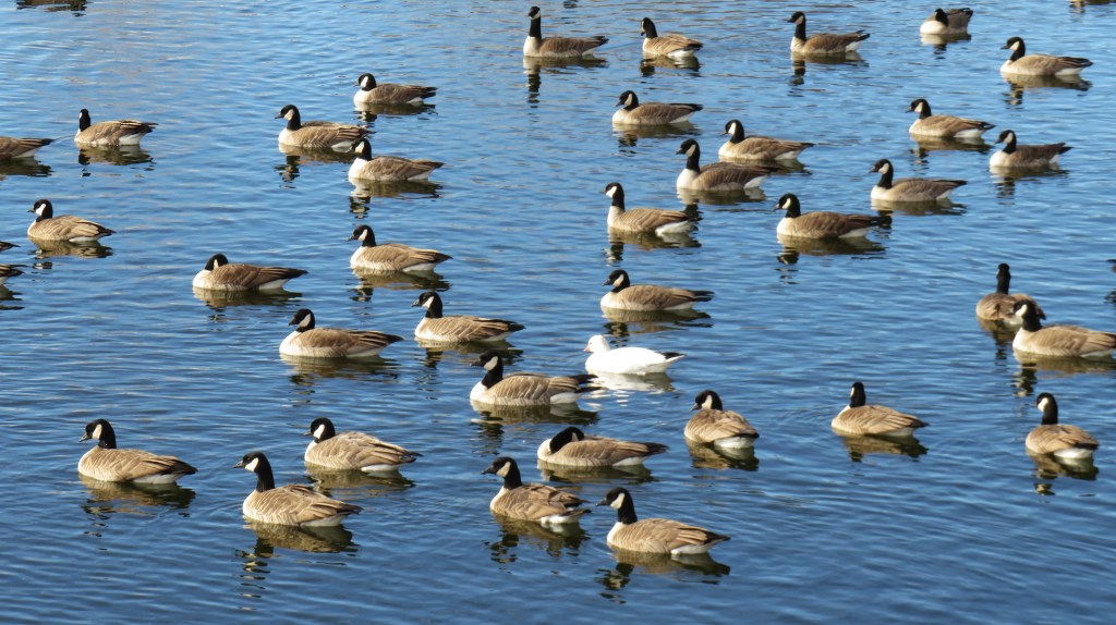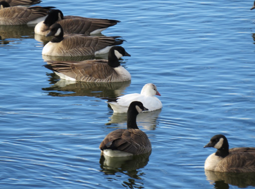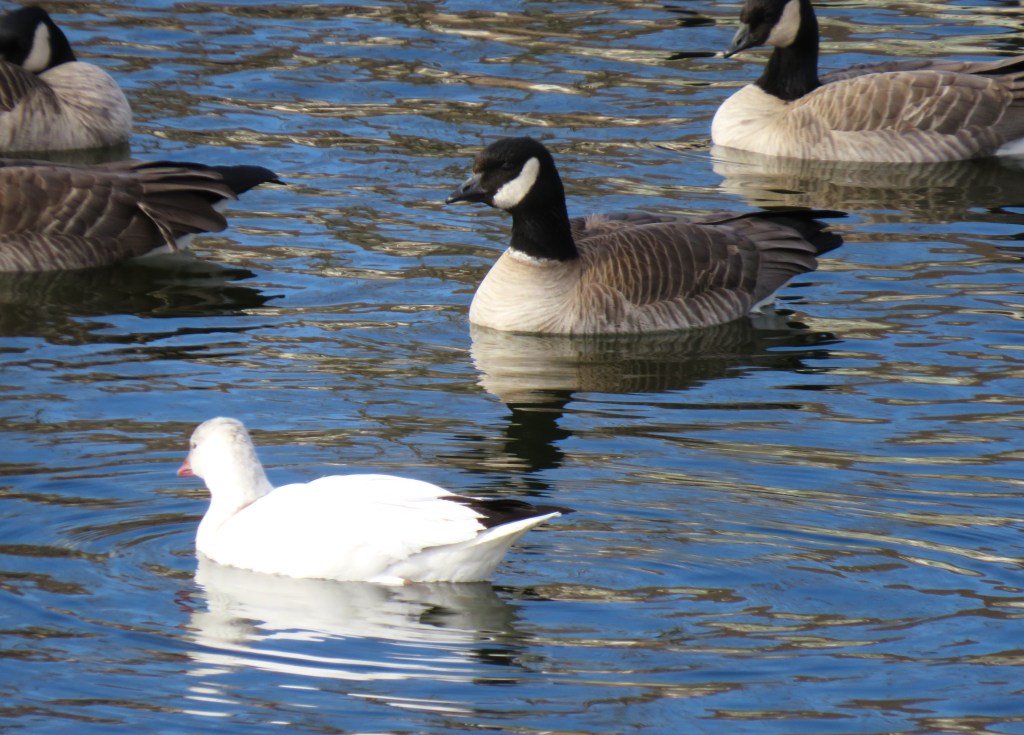 My lakes were filled with Canadian geese and a whole bunch of other various ducks. It was nice to see my lakes filled with so much variety again. But there was one surprise I almost missed and had to stop and do a double take. In a lake filled with Canadian geese, there was one, and one only, snow goose too. It was trying its best to blend in and not be seen, but I noticed it and let my camera snap a few good shots before walking away. π