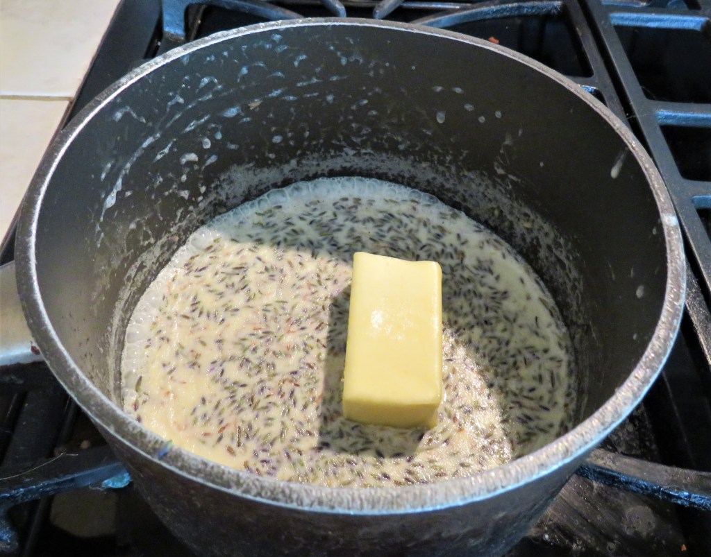 To make the ganache fillings melt the heavy whipping cream and flavorings together until they just start to simmer, then added the butter, and mix it all in together. Cook over a medium-high flame, making sure to stir constantly, in a slow, gentle manner. Once everything is blended together, let it steep for 15 minutes, then strain and throw away the used flavorings.
