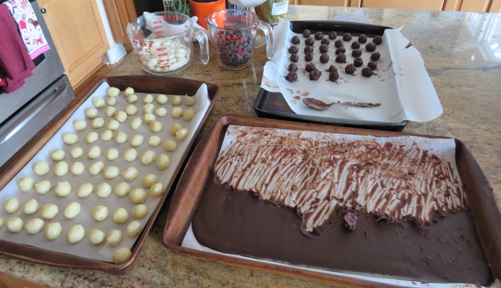 Once the chocolate balls are formed, refrigerate again for at least one more hour. You can also place them in the freezer too. I found this makes them easier to work with and they do not melt so quickly when dipped in the chocolate.