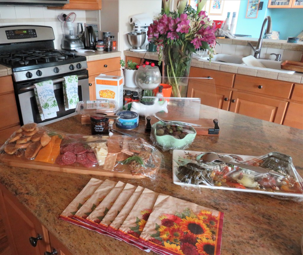 I just started coaching for the summer again (I am hoping it will turn into a full time gig, but for now it is just for the summer), and our friends Leslie and Tim were coming in from out of town, but they were only going to be here for one night before they were on the road again. Leslie and I have known each other since 7th grade, and have been life long friends/family. Larry was home when they arrived, but I would not be home until later that evening. So I prepared a charcuterie tray and a some antipasto. Originally they were going to just be appetizers, but I kind of over prepared, hmmmm, imagine that, so it became a quick and easy Mediterranean tapas dinner instead.