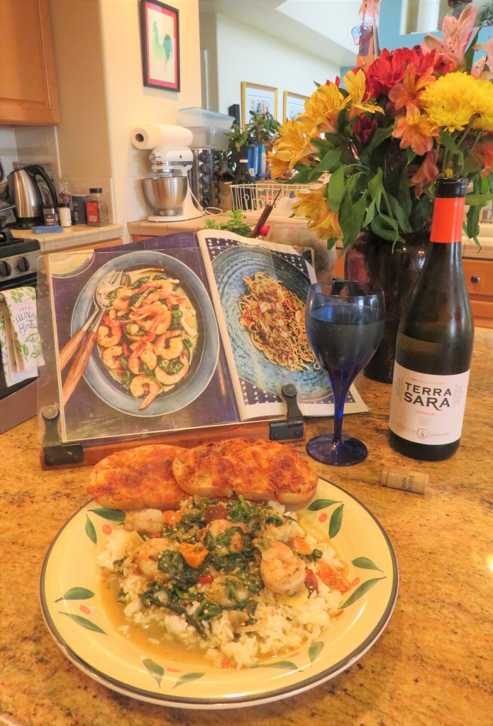 This time I served it over rice, with some herbed cheese bread on the side, and of course I completed the meal with some cool, crisp buttery chardonnay as well. Delicious!