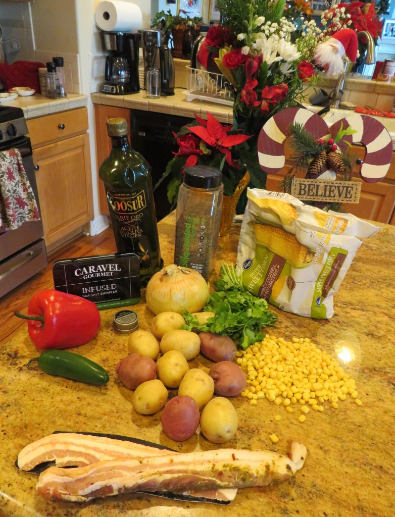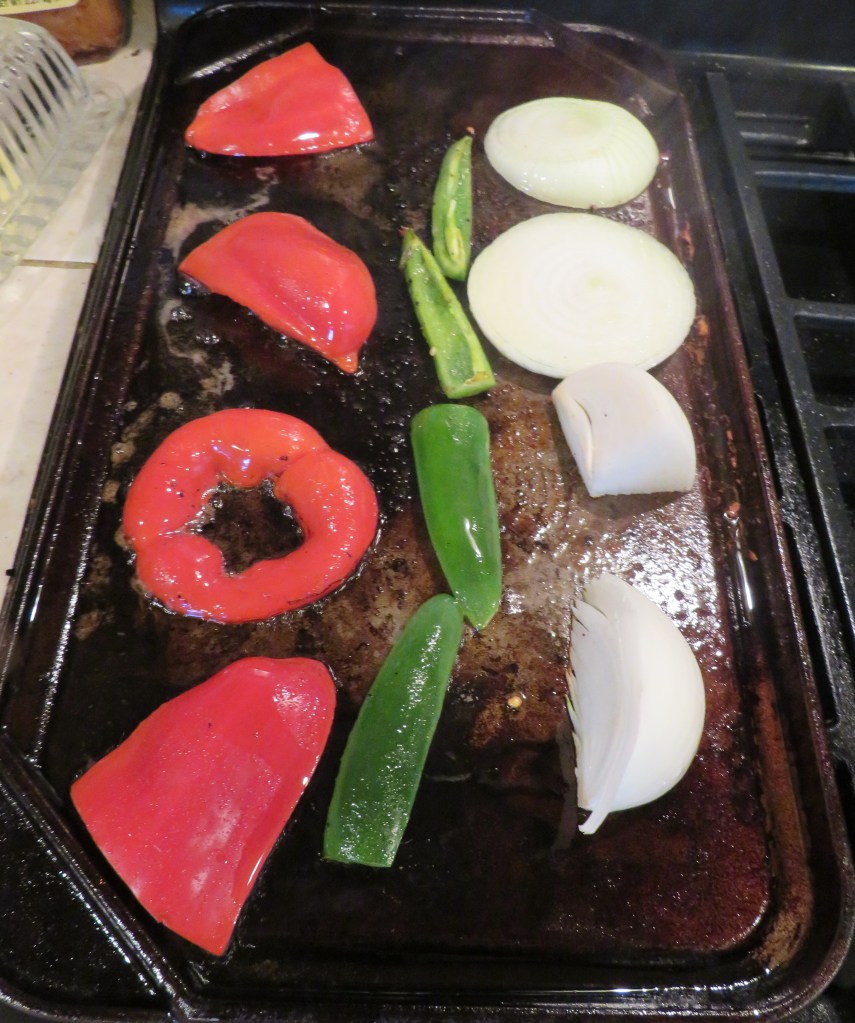 The original recipe only called for mussels. I added mussels, but I also added shrimp and vegetables, and then I served it all over rice to make it a heartier meal. I also got to use up some of my leftovers, which always makes me a happy camper. I used some of my new salt too. I added garlic blend infused salt for this dish. Infused Salt Box 🙂 The vegetables I added were my leftover asparagus topped with garlic, red and yellow bell peppers and onions. Adding vegetables is optional, but I like adding vegetables to my dishes, especially to my soups and stews. It always makes it more of a complete meal.