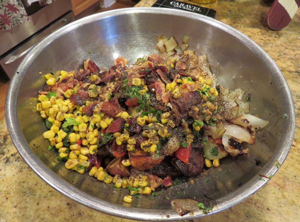 Larry and I decided to have something fairly simple for our Christmas Eve dinner since it was just for the two of us. But I still wanted something nice and special too. I prepared a mussel and shrimp ragout in a white sauce, inspired by the cookbook I purchased on our Canadian trip, French Taste in Atlantic Canada 1604-1758, or Le gout francais au Canada atlantique 1604-1758, by Anne Marie Lane Jonah and Chantal Vechambre. (I say inspired by, because you all know I made it my own). This cookbook is great. It’s filled with all kinds of traditional meals from the French Canadian beginnings, and it is written in both French and English. So not only can I cook some delicious traditional meals from the early French Canadian settlers, but I can work on my French too. C’est si bon! 🙂