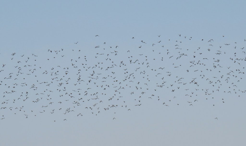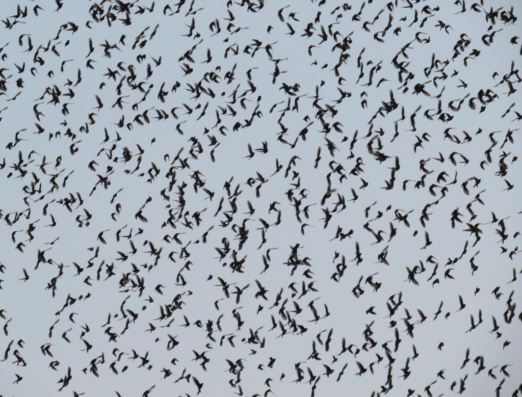 We didn’t see many birds at our bird banding class, and Larry I and joked we would probably see more birds at the WAS. Sure enough, we did too. This time, we saw mostly European Starlings. That’s OK. They are beautiful birds. There were 1000’s of them, in the trees and filling the sky above.