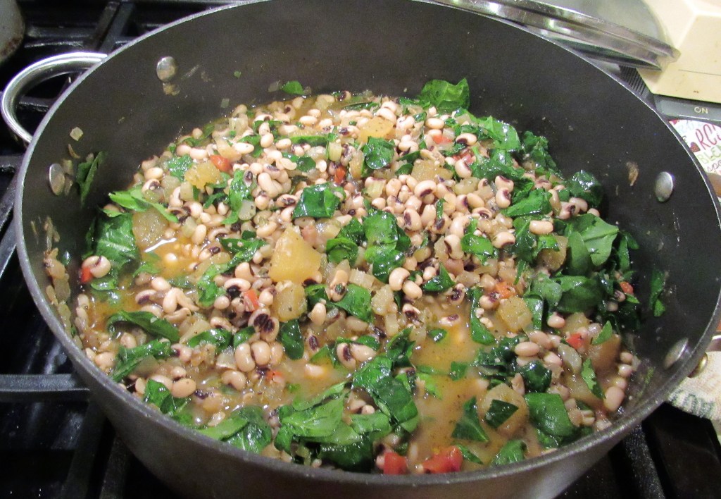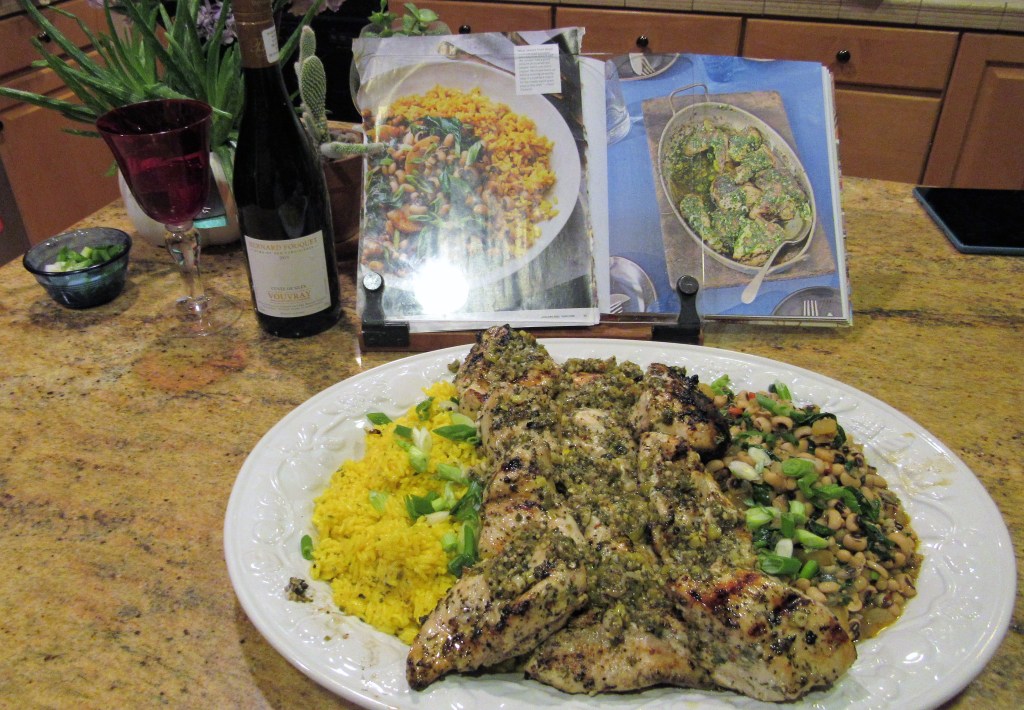 Other than my jalapeno-cilantro cream sauce, the whole dish was from leftovers of this and leftovers of that. The main ingredients were the rice, some of my black-eyed peas and chicken, all from our New Year’s feast. I also added some leftover vegetables, then made a jalapeno-cilantro cream sauce to bind everything together and topped it all with breadcrumbs.